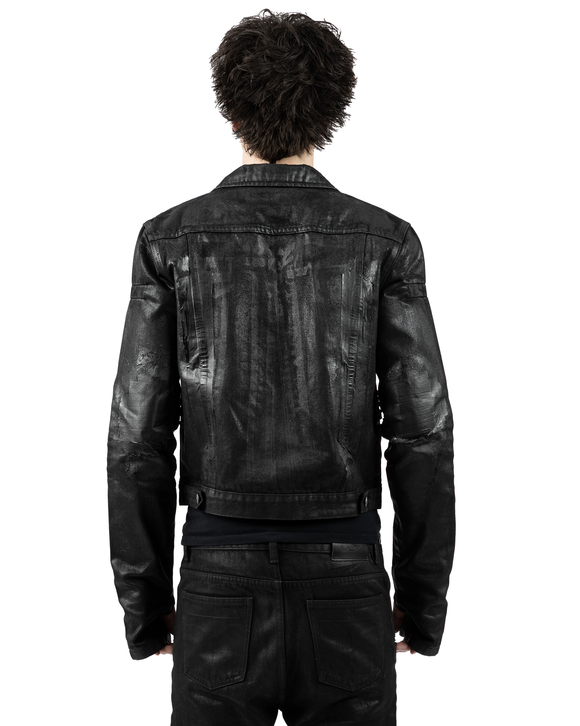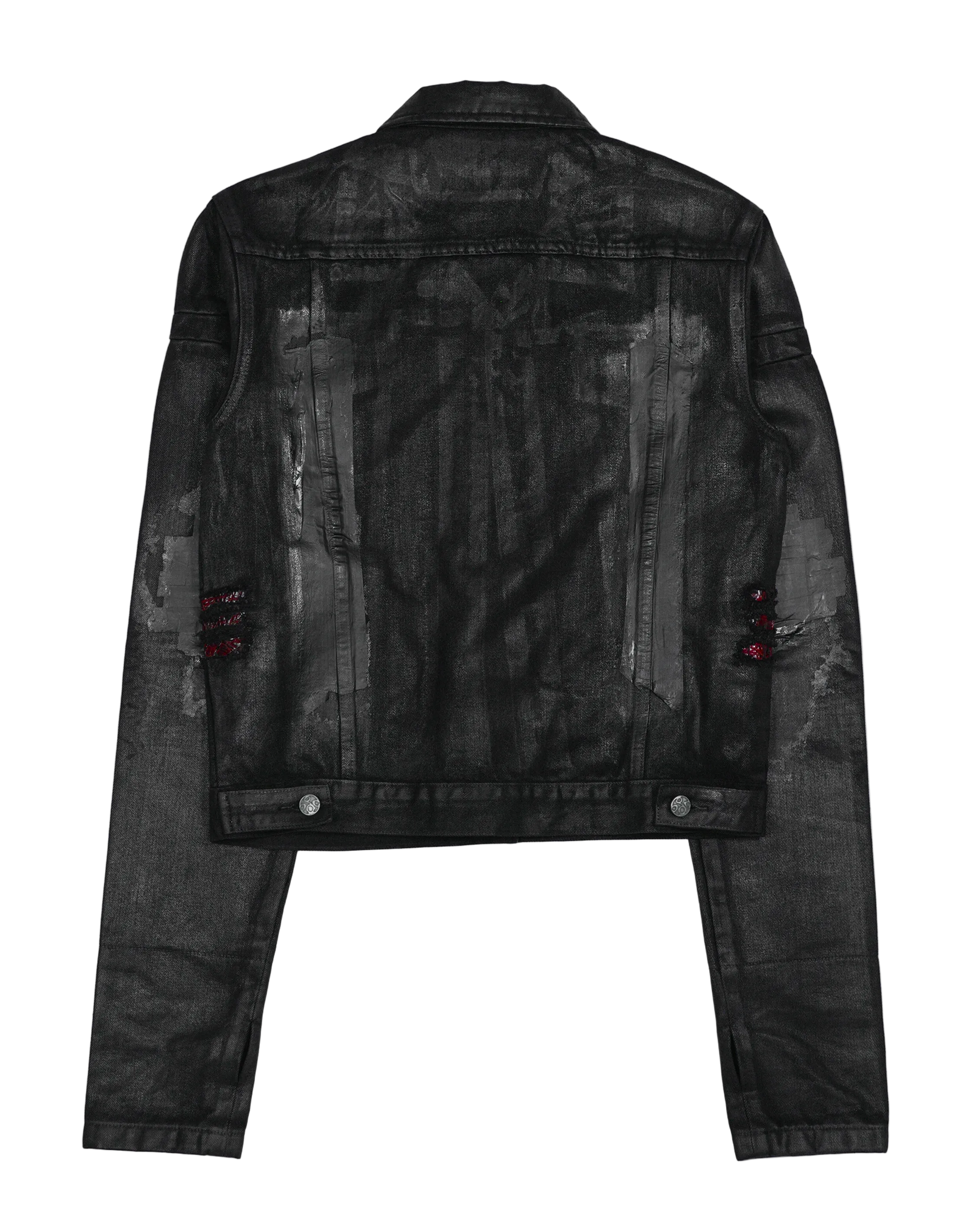 Due to the hand-applied crackle coating and distressing process, the placement and intensity of textures, fade, and surface detailing may vary slightly from piece to piece. Minor variations in colour, leather underlayer exposure, and finish are a natural result of this treatment, ensuring each jacket is unique.